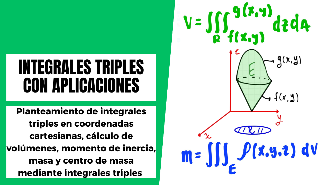 Explorarás la definición formal de la integral triple como límite de sumas de Riemann, obtendrás una explicación detallada de la interpretación geométrica de la integral triple como volumen de un sólido, conocerás propiedades de la integral triple tales como linealidad, aditividad, etc. Calcularás integrales triples iteradas mediante el teorema de Fubini, estudiarás regiones de integración en tres dimensiones, realizarás cambios en el orden de integración y podrás calcular el volumen múltiples sólidos a partir de técnicas que harás este trabajo más fácil. También podrás realizar ejercicios donde tendrás que calcular centros de masa de sólidos y momentos de inercia.