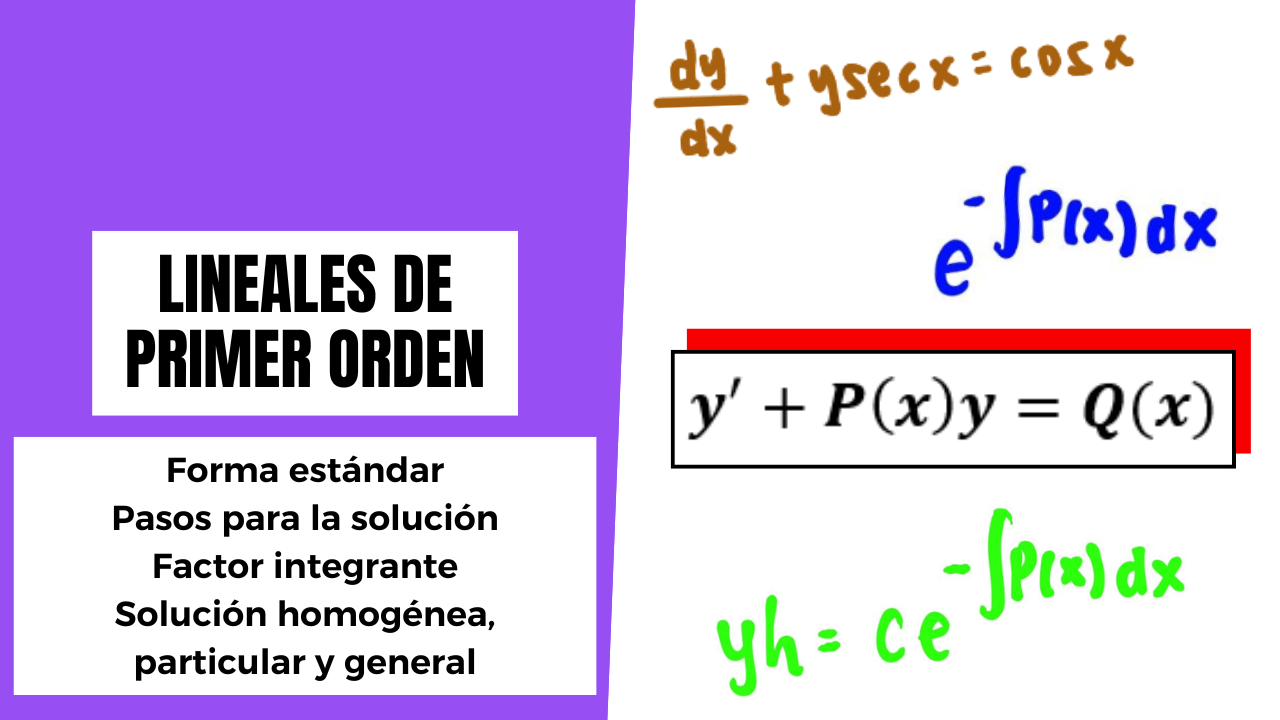 Resolverás ecuaciones diferenciales lineales de primer orden, un tipo común de ecuación que aparece en una amplia variedad de contextos, también aprenderás a identificar y resolver este tipo de ecuaciones utilizando el método de factor integrante, que convierte una ecuación lineal no homogénea en una forma más fácil de integrar. Ampliarás tus conceptos sobre la solución general y la solución particular, así como su interpretación en contextos físicos y matemáticos, todo esto gracias a una lista de ejercicios de nivel con los cuales pondrás a prueba tus capacidades y te prepararás para tu examen.